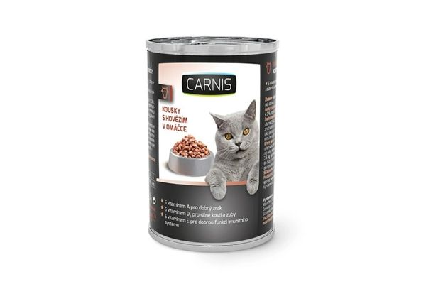 Carnis gabalėliai su jautiena padaže – tai pilnavertis maistas suaugusioms katėms. Purūs jautienos gabalėliai padaže gaminami iš aukštos kokybės, lengvai virškinamų ingredientų, todėl sudaro skanų ir subalansuotą racioną. Pašare yra svarbių vitaminų ir mineralų optimaliu santykiu, kurie būtini tinkamam organizmo funkcionavimui, regeneracijai ir detoksikacijai.
