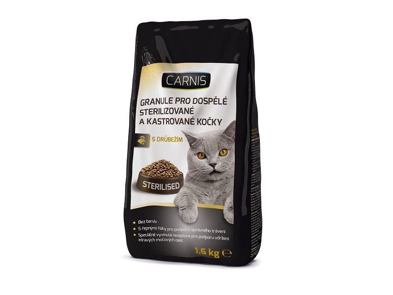 CARNIS sausas paukštienos maistas idealiai tinka sterilizuotoms ir kastruotoms katėms, nes yra sukurtas specialiai sveikiems šlapimo takams palaikyti. Jame yra reikalingas baltymų kiekis gerai fizinei būklei palaikyti, taip pat burokėlių minkštimo, kuris gerina virškinimą ir padeda išvengti pernelyg didelio svorio augimo. Pilnavertis ir subalansuotas pašaras taip pat apima: