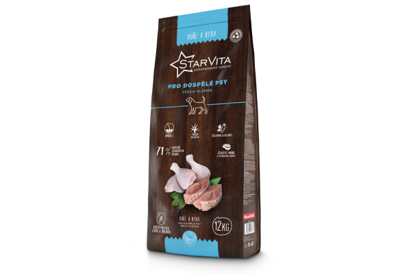 StarVita sausas maistas suaugusiems šunims su jautiena ir žuvimi – 12 kg