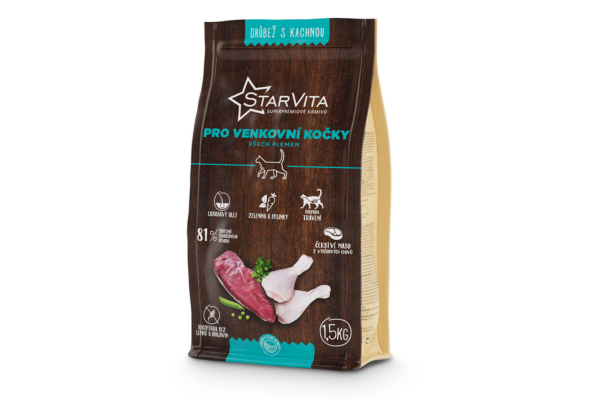 StarVita sausas maistas lauko katėms su antiena ir vištiena – 1,5 kg